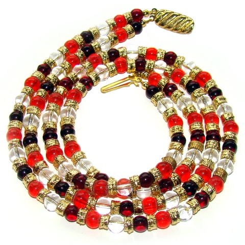 Élégant Collier en véritable verre de Murano taillé de couleur rouge