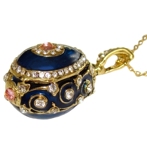 Ce Pendentif russe en forme d'oeuf fabriqué en alliage doré recouvert d'émail bleu, décoré par les strass