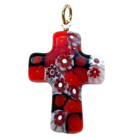 Pendentif Croix Verre Murano Millefiori